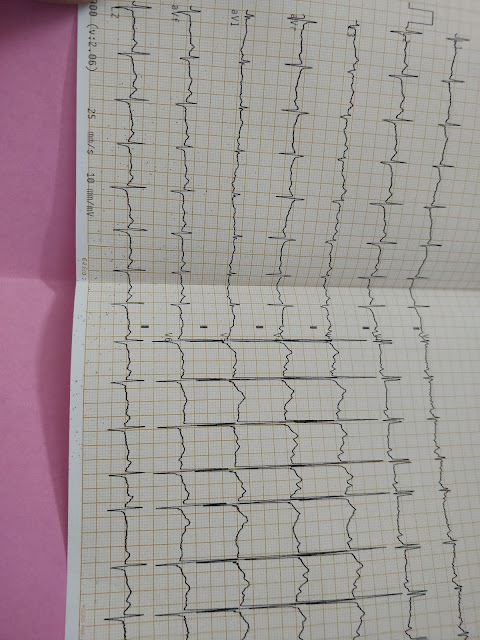 Atria firing at eg-200 from ectopic foci of dilated myocardium,vagal inhibition on av node-av nodal block-2:1,only 100 beats from ventricles,